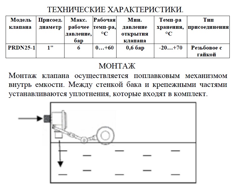 Служит для автоматического прекращения подачи воды в емкость при достижении ей определенного уровня.