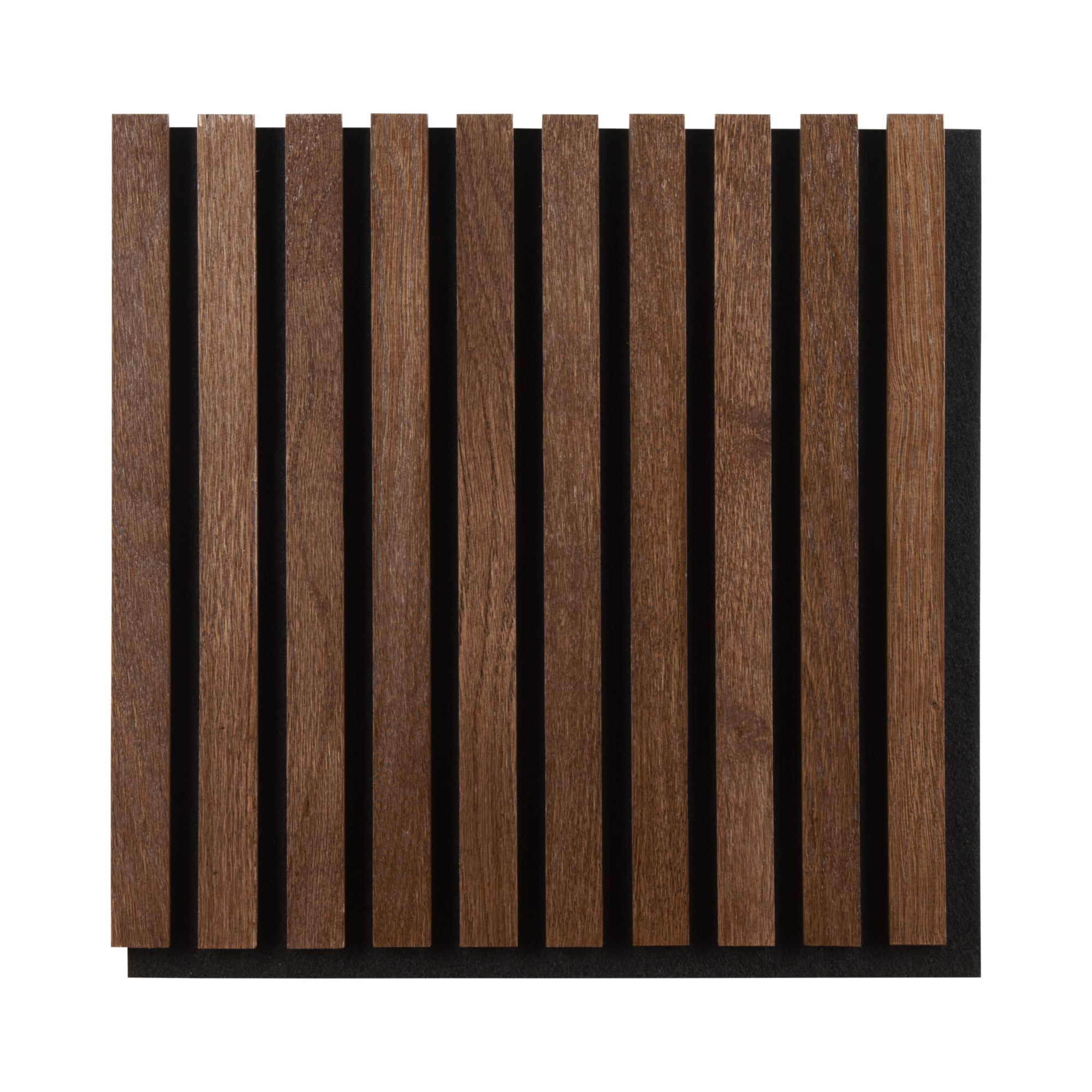 Лицевая часть: Декоративные рейки из цельного массива дуба, толщина 7 мм, ширина 20 мм, расстояние между рейками 10 мм. Покрытие Dark тонировка и лак в два слоя. Мы сохраняем естественную текстуру и тепло древесины, даря интерьеру благородство и экологичность.